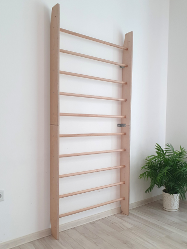 Ladder dimensions: 220 cm - 87" (H) x 80 cm - 31.5" (W). Swedish ladder has 10 crossbars. Unit is able to hold up to 120 kg (260 pounds)